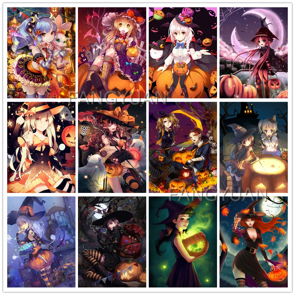 Алмазная картина 5D "ведьма" на Хэллоуин, квадратная круглая вышивка аниме, для девочек, алмазная вышивка, настенные картины