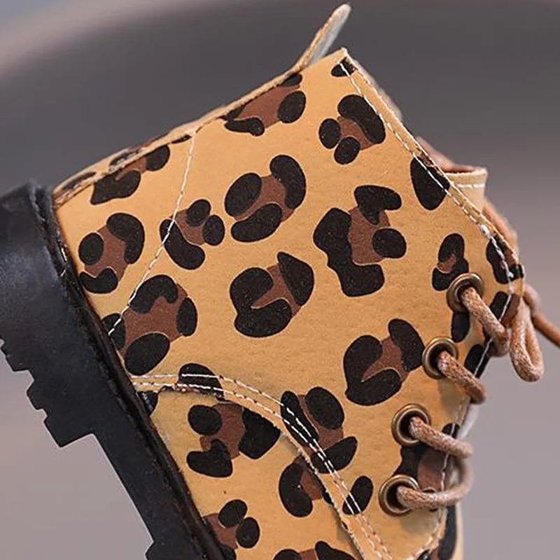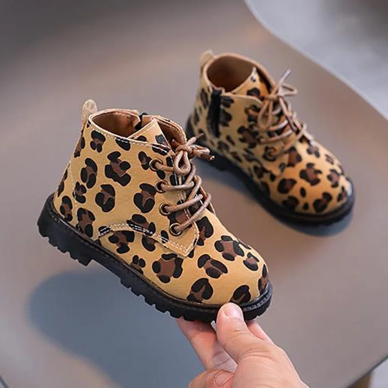 Осень-зима 2021, обувь для мальчиков и девочек, детские ботинки-мартинсы на мягкой подошве, повседневные ботинки с леопардовым принтом для детей, нескользящая обувь на молнии