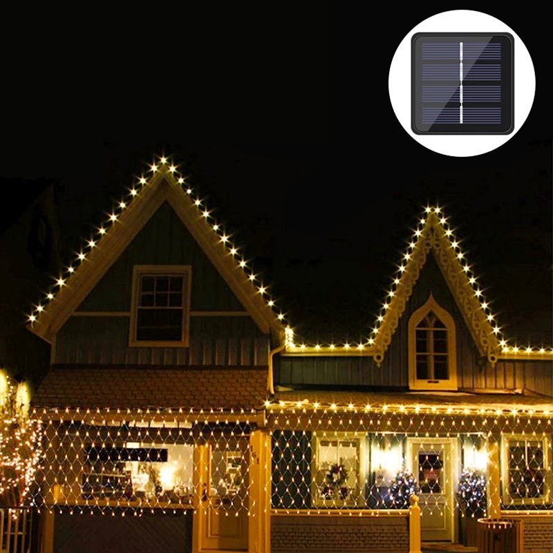 Уличная сетчатая гирлянда на солнечной батарее, 204 светодиодов, 3*2 м, праздничное освещение, занавеска, Сказочная лампа для сада, рождественской елки, свадьбы, Рождественское украшение
