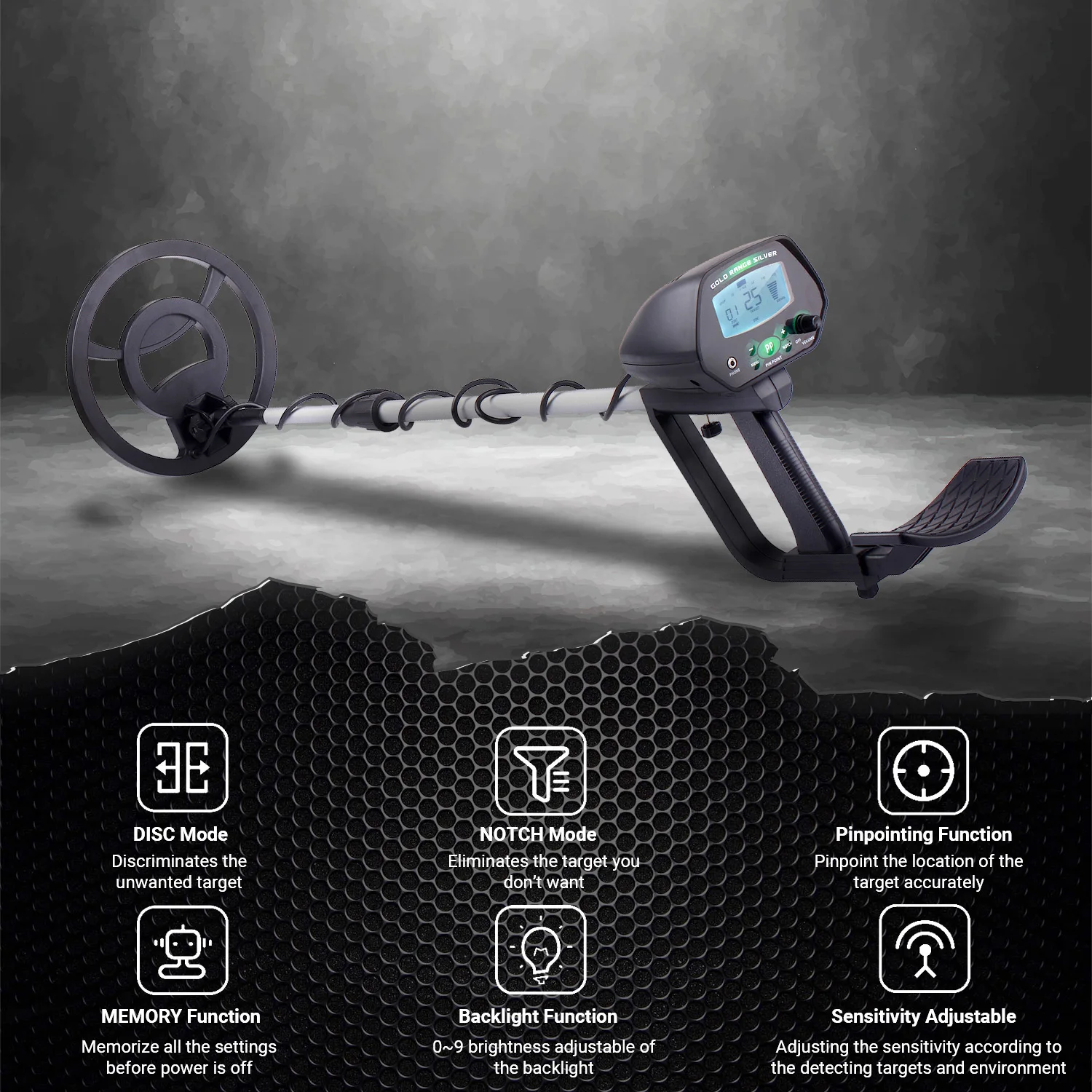 С помощью этого металлоискателя вы можете охотиться за монетами, реликвиями, ювелирными изделиями, золотом и серебром где угодно. Он обладает высокой чувствительностью и сильной способностью к дискриминации, очень универсальным и простым в использовании.Особенности:Экран дисплея: Большой ЖК-экран 3,0 дюйма показывает, вероятно, тип металла, глубину цели, диапазон дисков и выемки, уровень SENS и состояние батареи. Также имеется цифровой дисплей для цели. 0 ~ 9 регулируемых уровней яркости.3 тона звуковой дискриминации: звучит 3 отличительных тона (высокий, средний и низкий) для разных типов металла.Режим выемки: игнорирует нежелательный металл и находит ценные предметы, устанавливая диапазон выемки.Режим диска: определяет нежелательную цель, устанавливая числовой диапазон диска. Детектор не обнаружит цель за пределами числовых настроек.Режим PP: точно определяет местоположение цели. После того, как вы найдете металлический объект, вы можете переключиться в этот режим, чтобы найти точное местоположение цели.Идентификация сверхмедленной развертки: при очень медленном развертывании поисковой катушки для различия различных типов металла.Простота в эксплуатации: Держите поисковую катушку параллельной земле на расстоянии 2-3 дюйма, затем перемещайте ее вперед и назад на постоянной медленной скорости.Водонепроницаемая поисковая катушка: 10-дюймовая круглая поисковая катушка водонепроницаема для поиска на мелководье без проблем.Удобный дизайн: длину стержня можно легко отрегулировать в соответствии с высотой оператора.Разъем для наушников 3,5 мм: Выберите наушники с регулятором громкости, вставьте их в разъем телефона, после чего вы сможете охотиться за монетами, реликвиями, украшениями, золотом и серебром, никому не мешая.Характеристики:Материал: АБС-пластик + алюминийРегулировка подсветки: 0 ~ 9Разъем для наушников: разъем для наушников 3,5 мм (наушники в комплект не входят)Источник питания: щелочная батарея 2*9 в 6F22 (не входит в комплект)Размер экрана: 72*37 мм/2,83 * 1.46inДиаметр поисковой катушки: 220 ммРазмер блока управления: 130*90*138 мм/5,12*3,54 * 5.43inВес посылка: 1437 г/50,71 унцииПосылка: 43,5*25*9,5 см/17,13*9,84 * 3.74inУпаковочный лист:1 * блок управления металлоискателем1 * поисковая катушка1 подлокотник2 шатуна1 * Руководство (на английском языке)