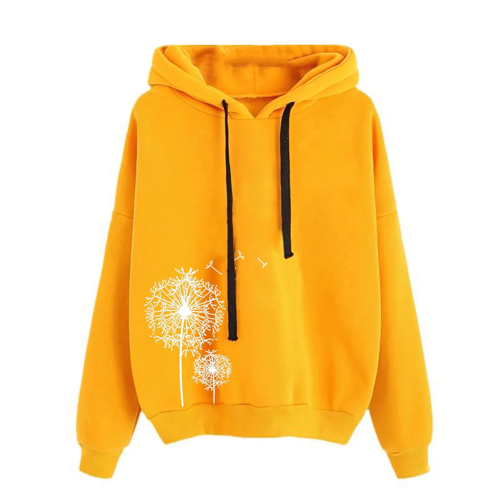 Женские толстовки с принтом одуванчика, свободный свитер, повседневные свободные толстовки с длинными рукавами, пуловеры, топы, новинка 2021, осенняя уличная одежда