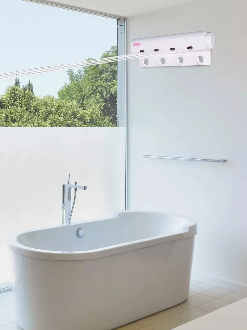 Компактные выдвижной линии одежды, обеспечивают большое пространство для вашей прачечной.