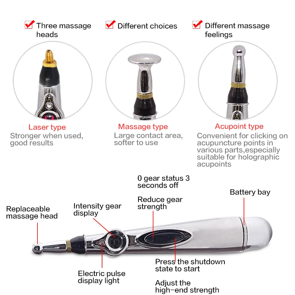 Электрическая акупунктурная ручка с магнитом 3 в 1, лечебный массаж...
