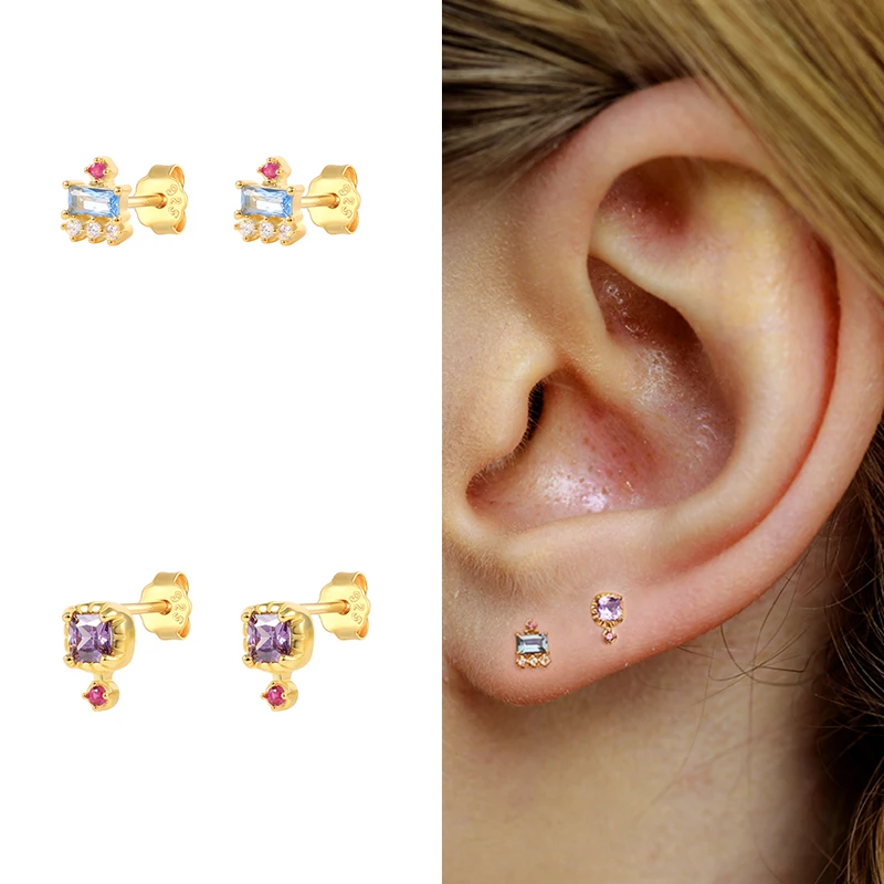 BOAKO, 100% Стерлинговое Серебро 925 пробы, милые серьги, Классическая мода, бирюзовый циркон, серьги-гвоздики для женщин, подарки для жены, изысканные ювелирные изделия