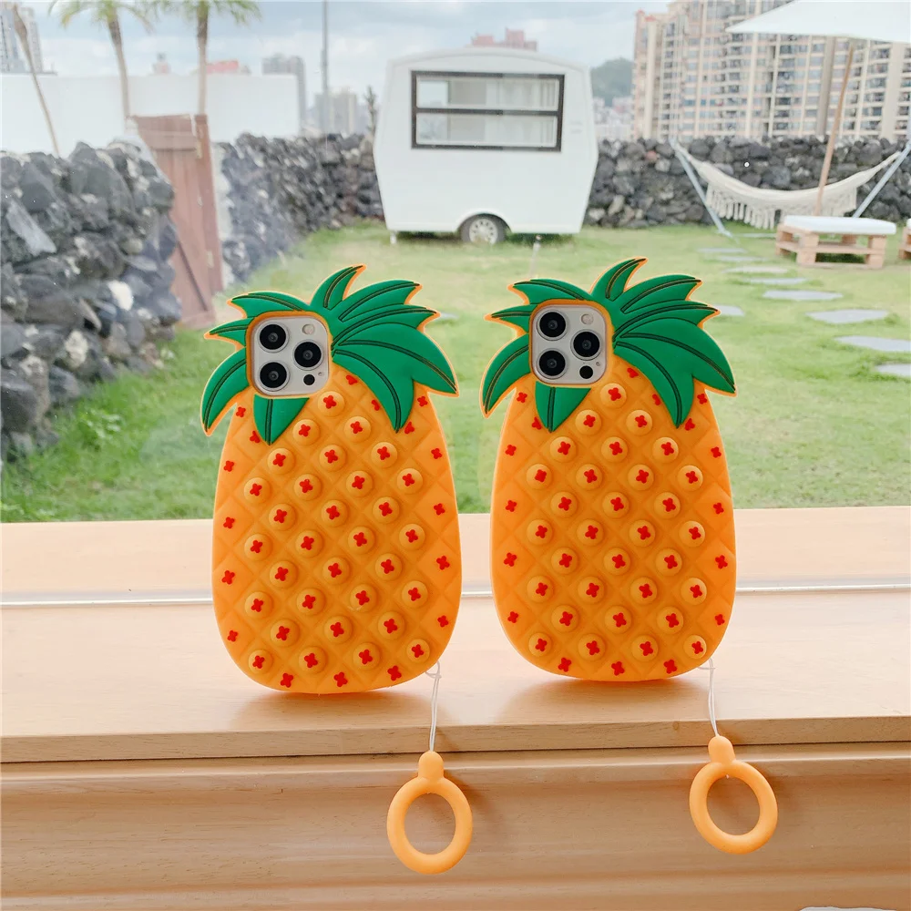 Силиконовый 3D-чехол с ананасом для iPhone 7, 8 Plus, X, XR, XS Max, 12 Pro Max, 11 Pro, мягкий силиконовый чехол с пузырьками