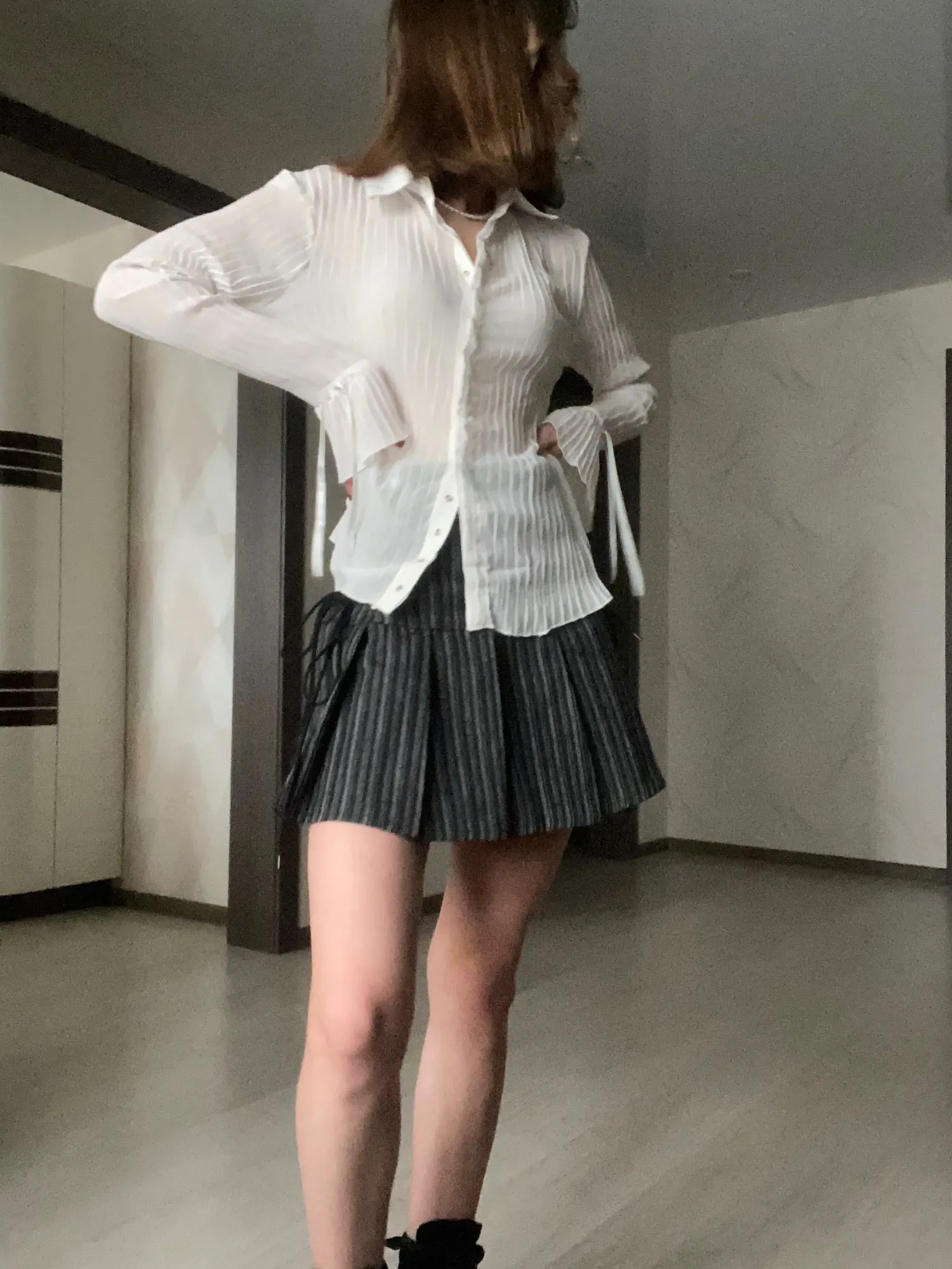 Женская рубашка на пуговицах Dourbesty Y2K, блузки, прозрачный кроп...