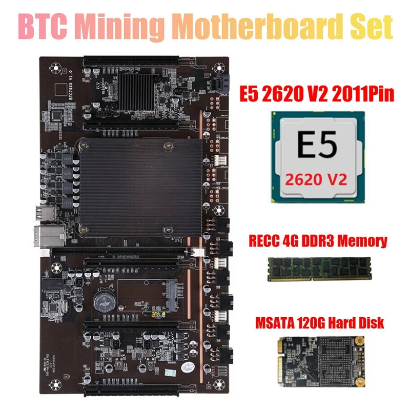 BTC Mining материнская плата X79 H61 с E5 2620 V2 CPU RECC 4 ГБ DDR3 ПАМЯТЬ 120 г SSD 5X PCI-E 8X поддержка 3060 3070 3080 GPU