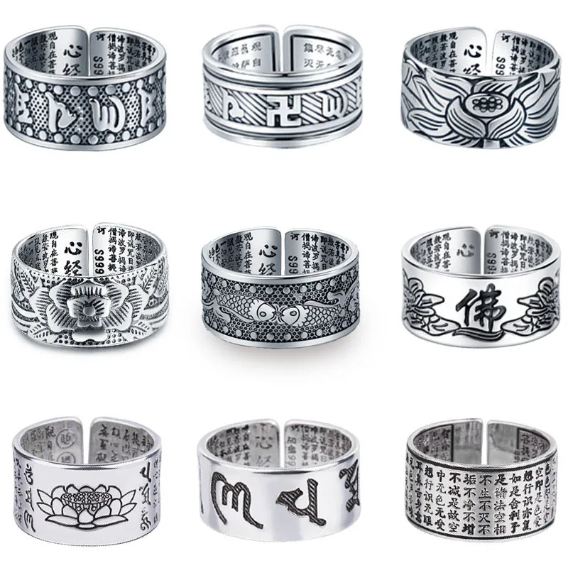 Буддистская мантра с шестью символами, Писание, сердце, сутра, раньше, ретро, указательный палец, защита тела, переводное Открытое кольцо, хвостовое кольцо