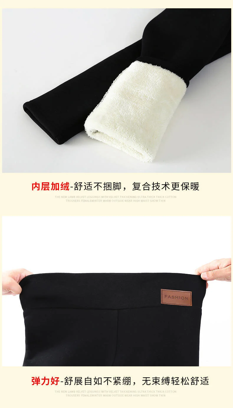 Женские осенне-зимние плюшевые ярлыки из искусственной кожи, кашемировые Теплые эластичные леггинсы из ягненка, женские теплые брюки