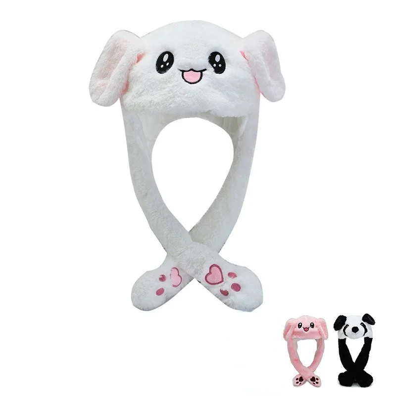 Новинка 2021, женская шапка с заячьими ушками, шапка с подвижными ушками кролика из плюша, шапка с подвижными ушками для женщиндетейдевочек