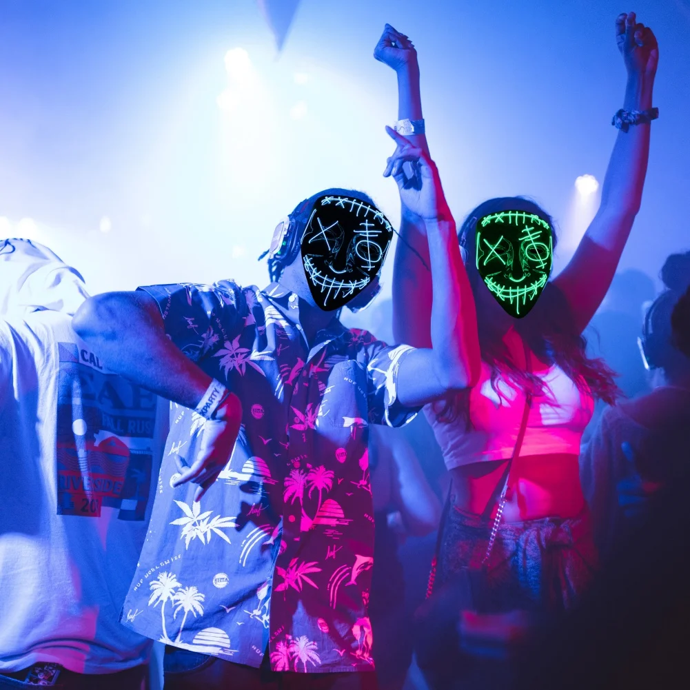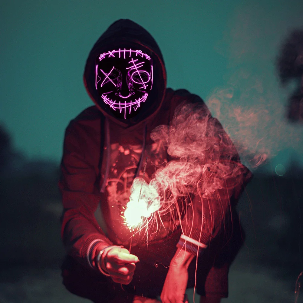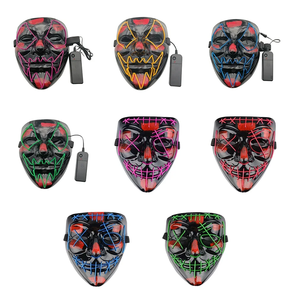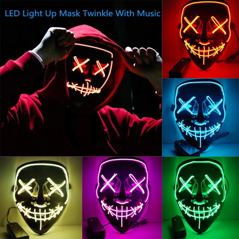 Светодиодная неоновая маскарадная маска, маска для Хэллоуина, светится в темноте, маска ужаса, светящаяся маска