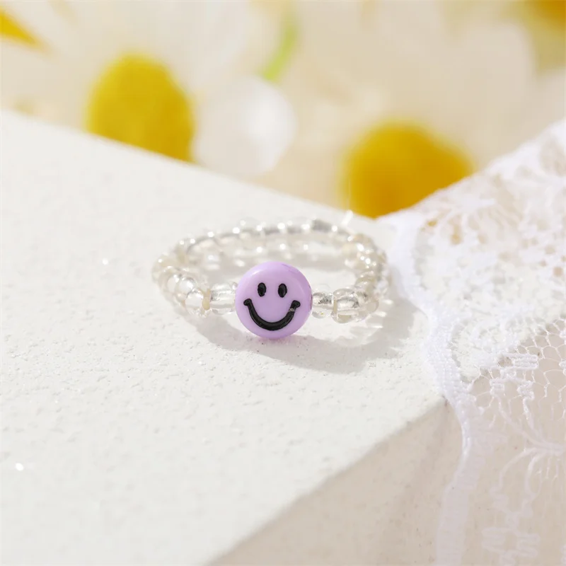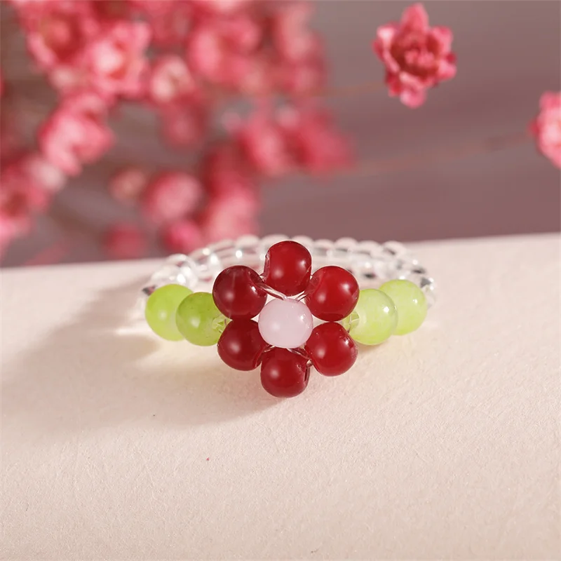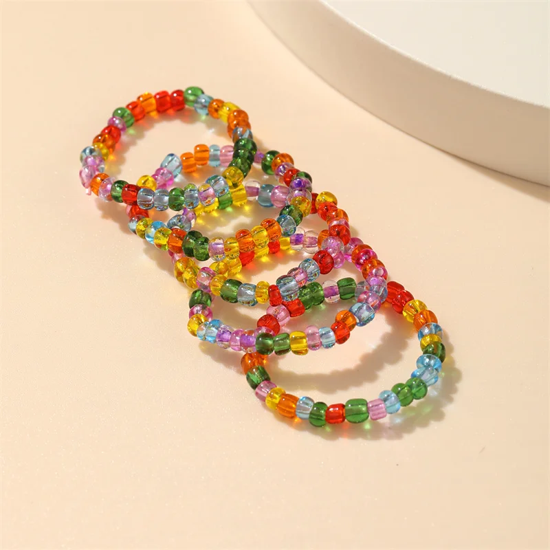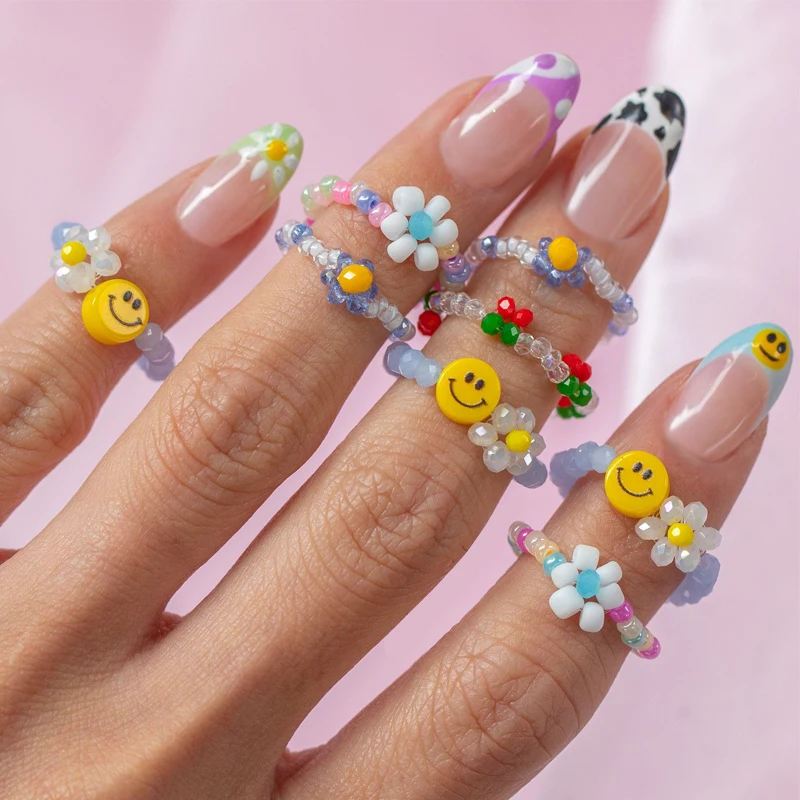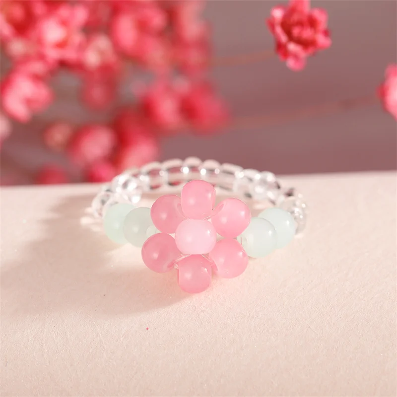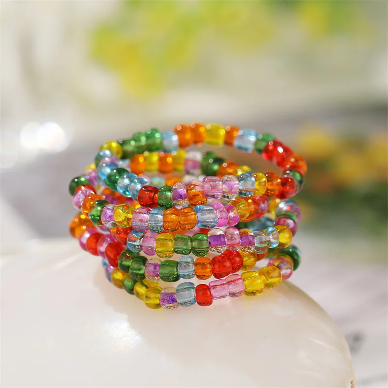 Радужное прозрачное кольцо из бисера Y2K, Мода Модный богемный, многоцветный цветок, рисовые бусины для женщин, девушек, ювелирные изделия, подарок