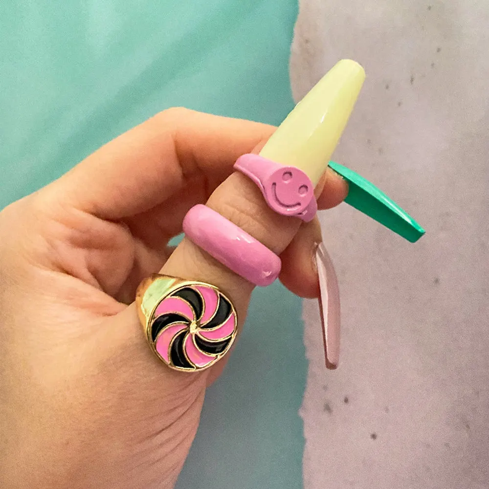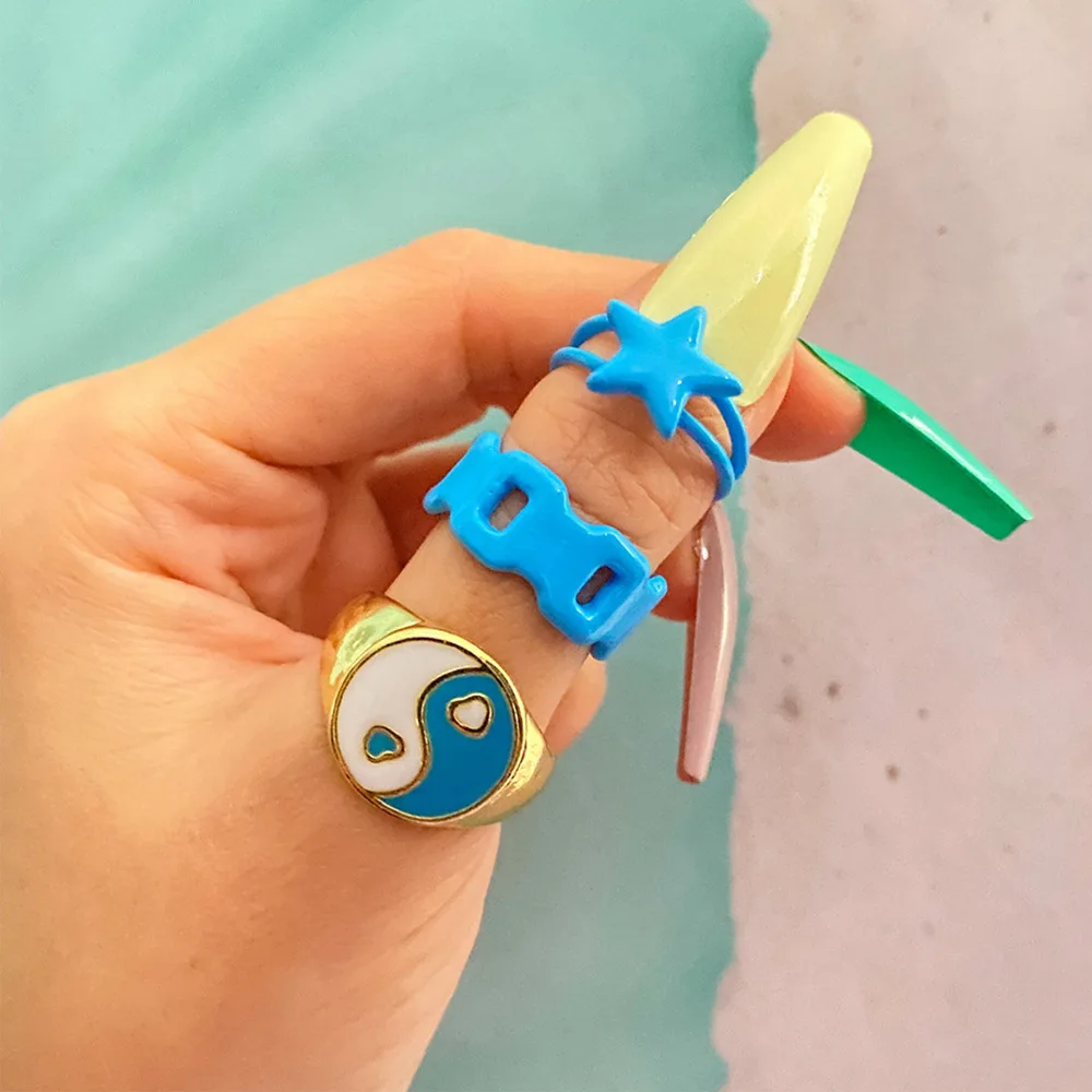 мода любовь зеленый кольцо кольцо кольцо костюм женщина пара сладкий цвет акриловый смола сердцевинная цепь кольцо оптовая торговля ювелирные изделия