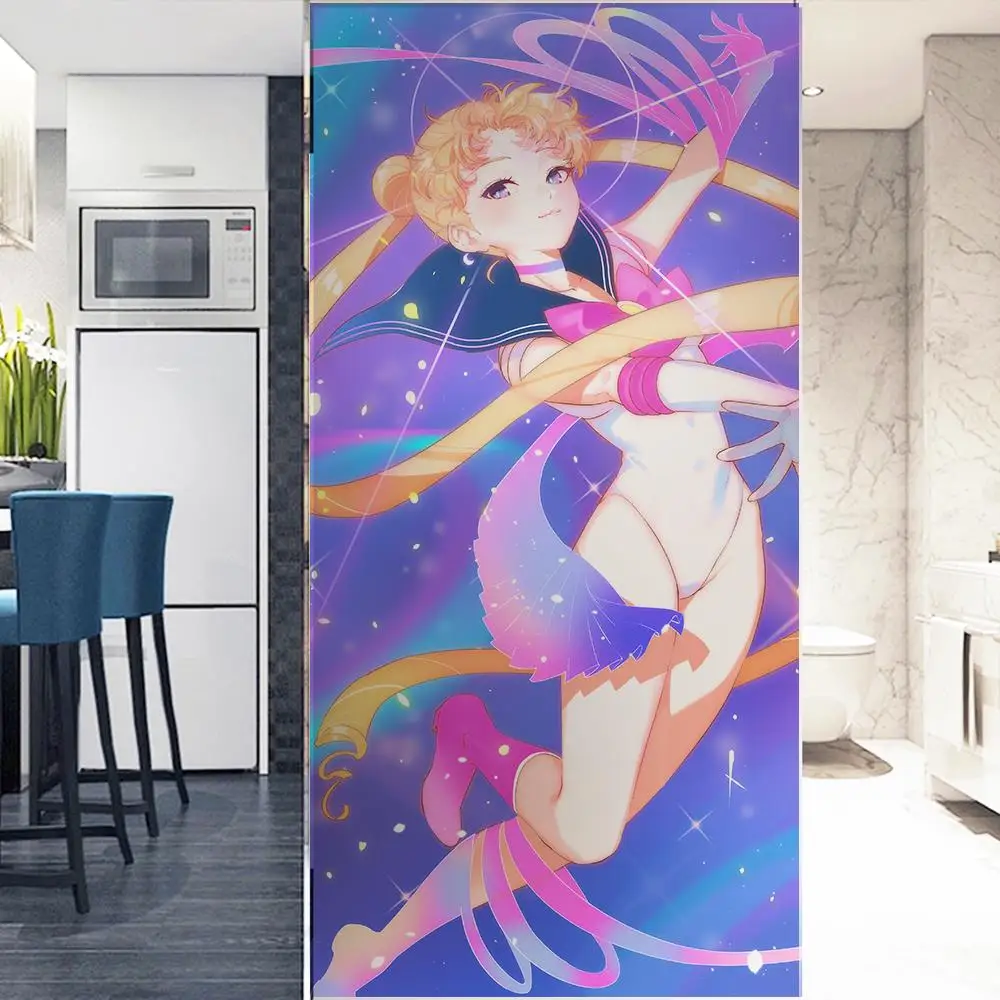 Бесклеевая Электростатическая стеклянная пленка аниме Сейлор Мун, наклейка на окно, решетку радиатора, наклейка для туалета, ванной комнаты, непрозрачная пленка для конфиденциальности