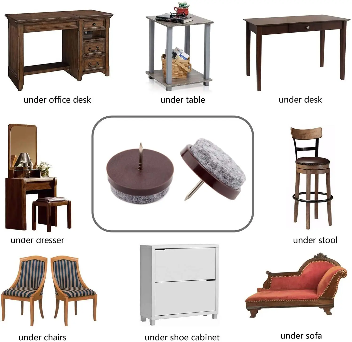 Описание:1. Высококачественный железный гвоздь, Нетоксичный АБС-пластиковый чехол, Высокоплотный Тонкий Войлок.2. Предотвращает помехи и царапины уменьшает вибрацию трения и шум во время перемещения мебели стулья столы, и продлить срок их службы и пол.3. Легко крепится на дно деревянных мебельных стульев столами с помощью молотка.4. Длится намного дольше, чем палка на подушечках и более легкая замена.5. Вам лучше предварительно просверлить пилотные отверстия для твердой древесины, чтобы предотвратить сгибание гвоздей, поломки пластиковых ящиков или повреждения мебели. Пожалуйста, поставьте продукты подальше от детей для острых ногтей.