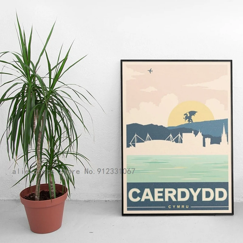 Скандинавский всемирно известный ретро постер для путешествий, художественный постер каэрдидд, Кардифф, Уэльс, холст, живопись, Современный домашний декор, роспись в гостиной