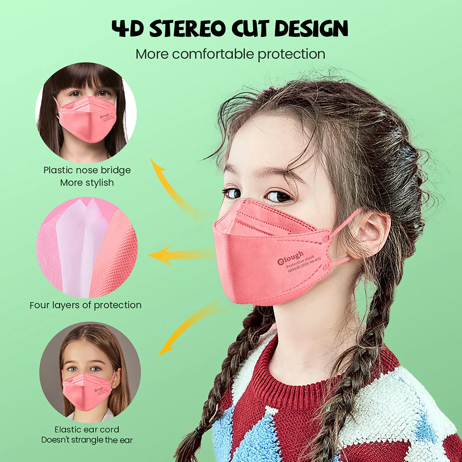 Маска Kn95 Elough детская, многоразовая, Kn95 FPP2, 10-100 шт.