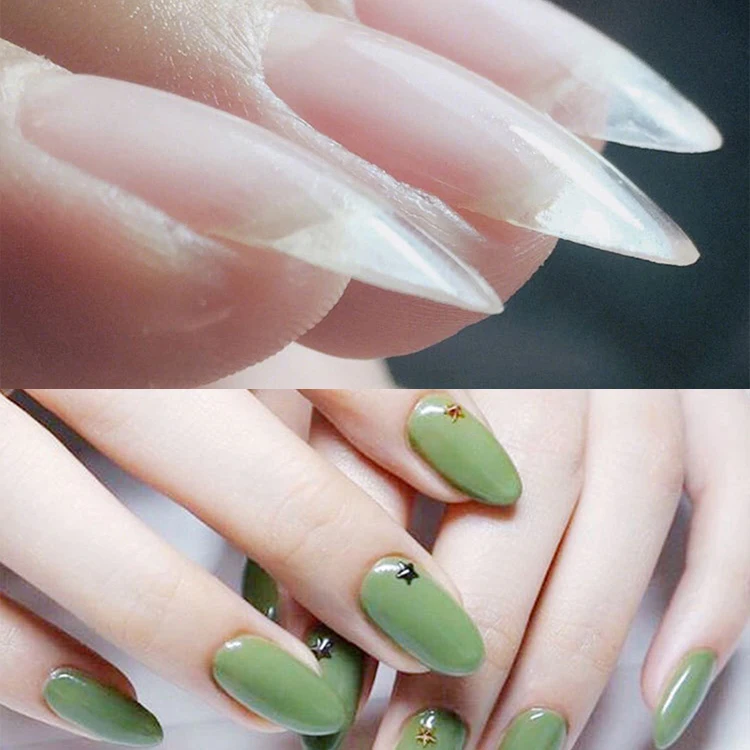 6. Удалите накладные Кончики ногтей, обрежьте форму и отполируйте ноготь.