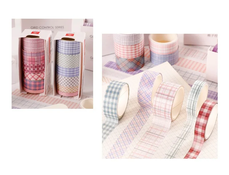 5 шт.компл. Цветные Бумажные Ленты Kawaii Grid Washi Tape наклейки ...