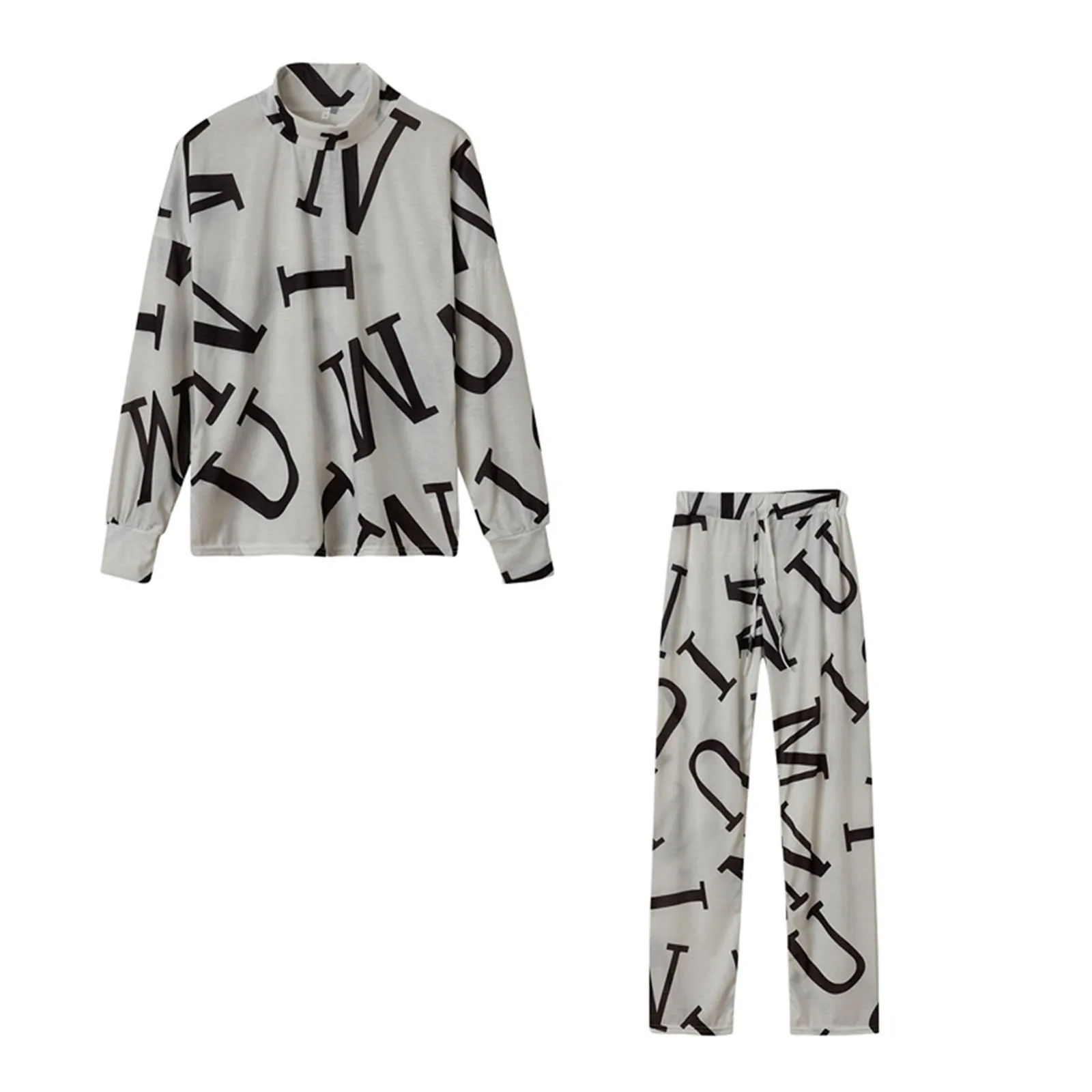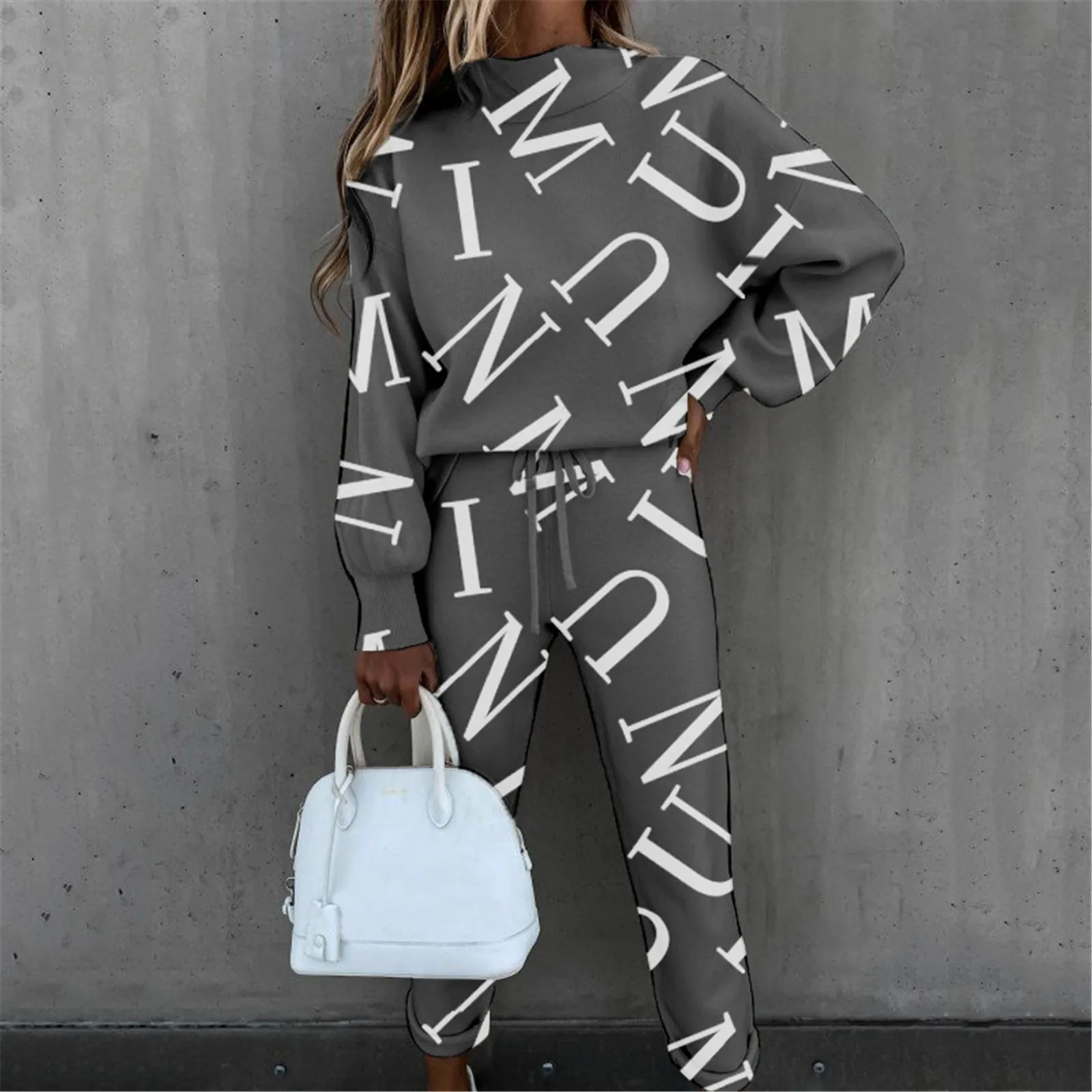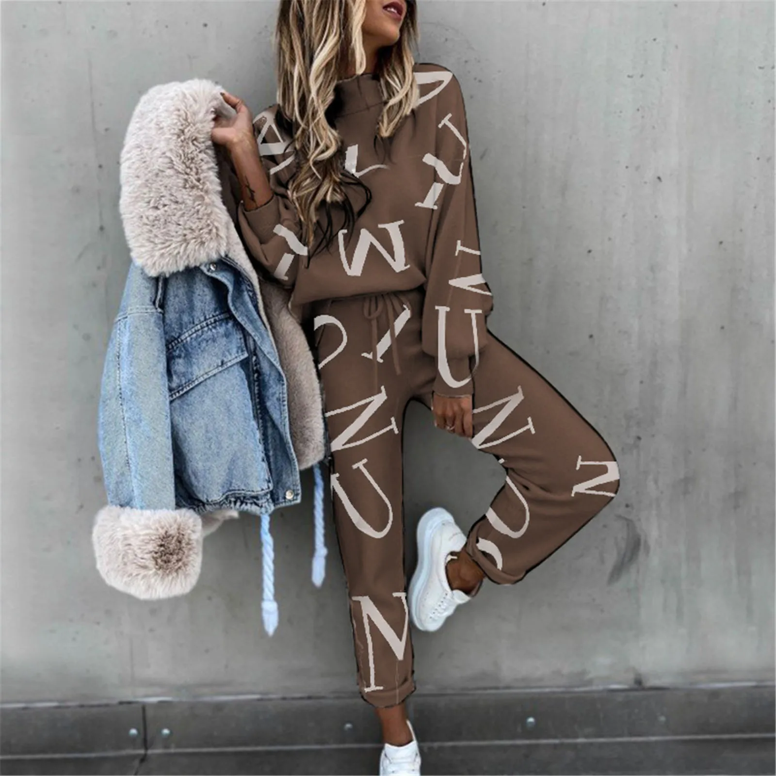Женский спортивный костюм, комплект из 2 предметов, Повседневная Блузка с длинным рукавом и буквенным принтом, весна-осень 2021