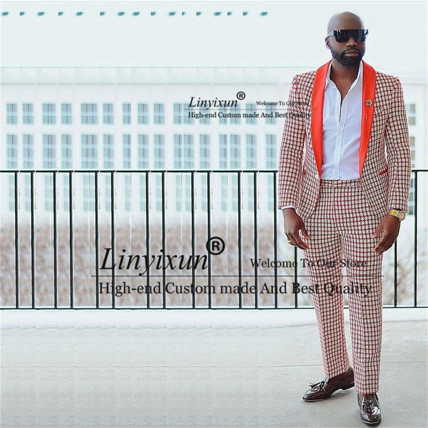 Классический Клетчатый облегающий мужской костюм и костюм, женский Повседневный блейзер для шафера на одной пуговице с отворотом и шалью, комплект из 2 предметов (пиджак + брюки) для женщин