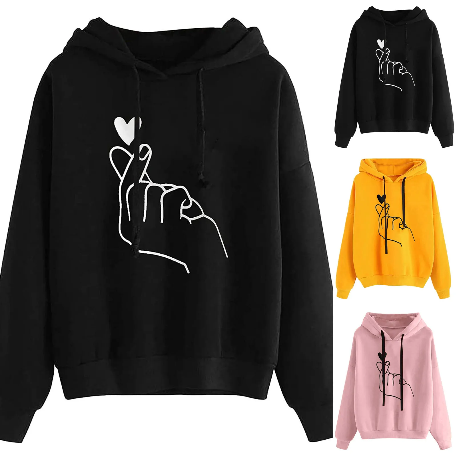 Свитшот женский в стиле Харадзюку, Удобная Повседневная Свободная кофта с длинным рукавом, кулиской и капюшоном, яркий принт сердца, уличная одежда