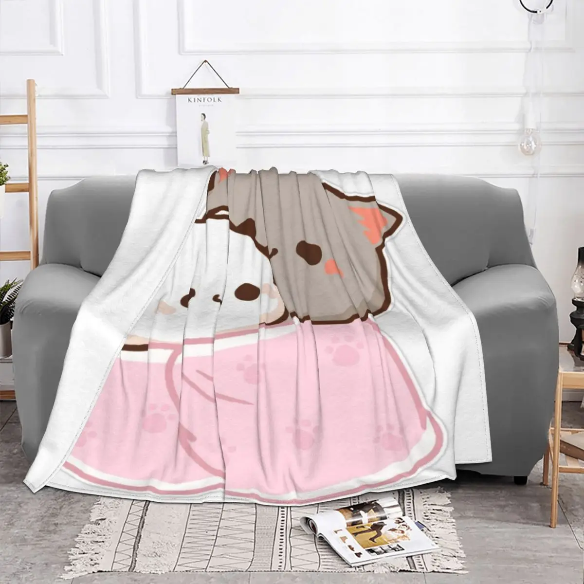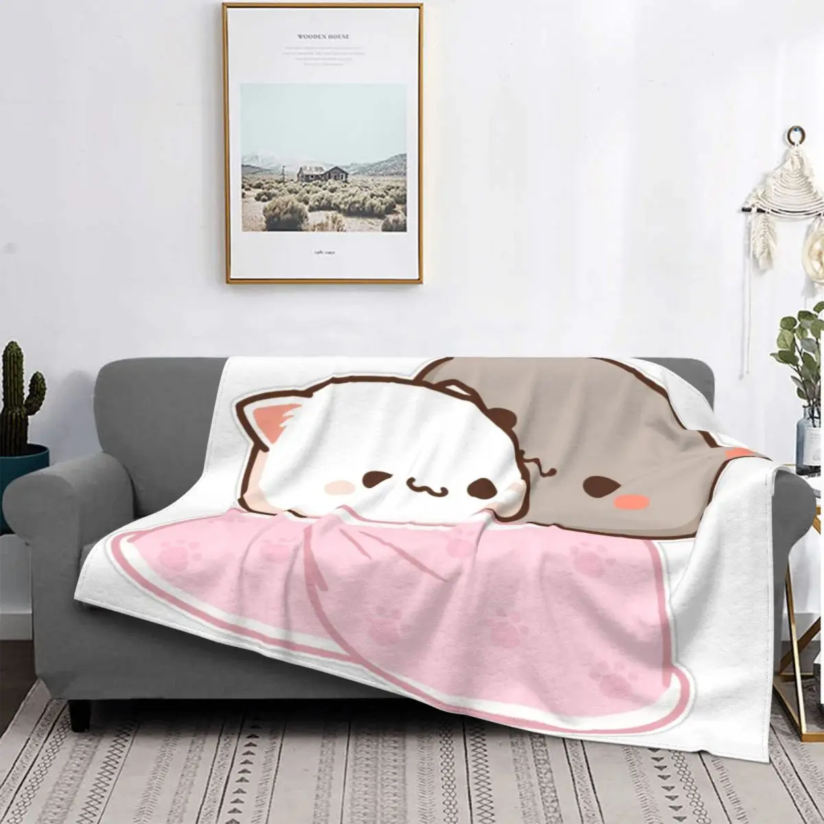 Одеяло с изображением кота Моти, персика и Гомы, 2420, покрывало на кровать, плед, покрывало 90, покрывало для пикника