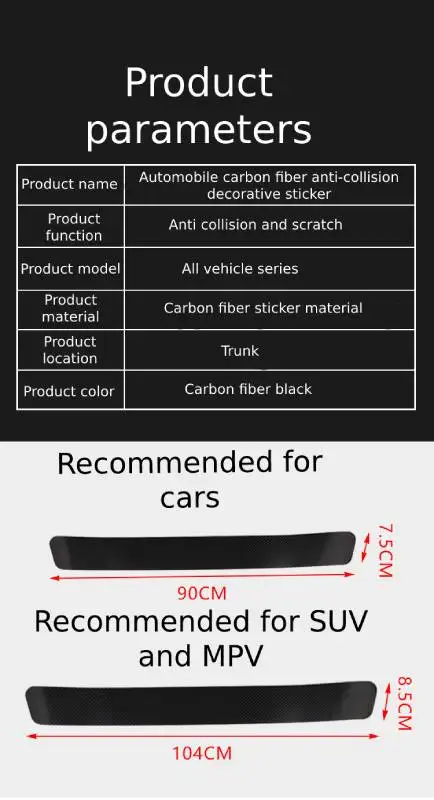 Это задняя защитная накладка, которая используется для предотвращения появления двериПластина, которую нужно поцарапать. Очень легко установить и удобно чистить. ЕслиВам они нужны, просто купите их. Они вас не разочаруют.Особенности:С использованием полиуретанового материала на поверхности есть полосы из углеродного волокна для предотвращения царапин.Изысканный бордюр, край не легко проследить.Защищает задняя защитная накладка от истирания.Удобно чистить грязь.Легко устанавливается. Просто вставьте его в нужное место.Характеристики:Материал: ПВХЦвет: черныйПосылка:1 * задняя защитная накладка наклейка