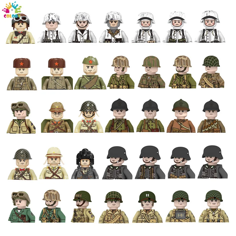 Детские игрушки 10 шт.лот WW2, военные армейские фигурки, строитель...