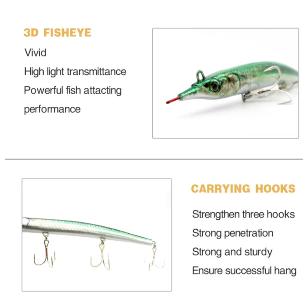 * Приманка спроектирована с лучшим балансом, поэтому приманка может плавать с самой медленной скоростью вытягивания.