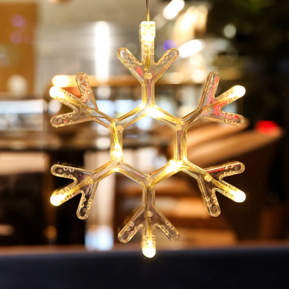 Рождественские светодиодные огни, снежинки, шторы с присосками Сант...