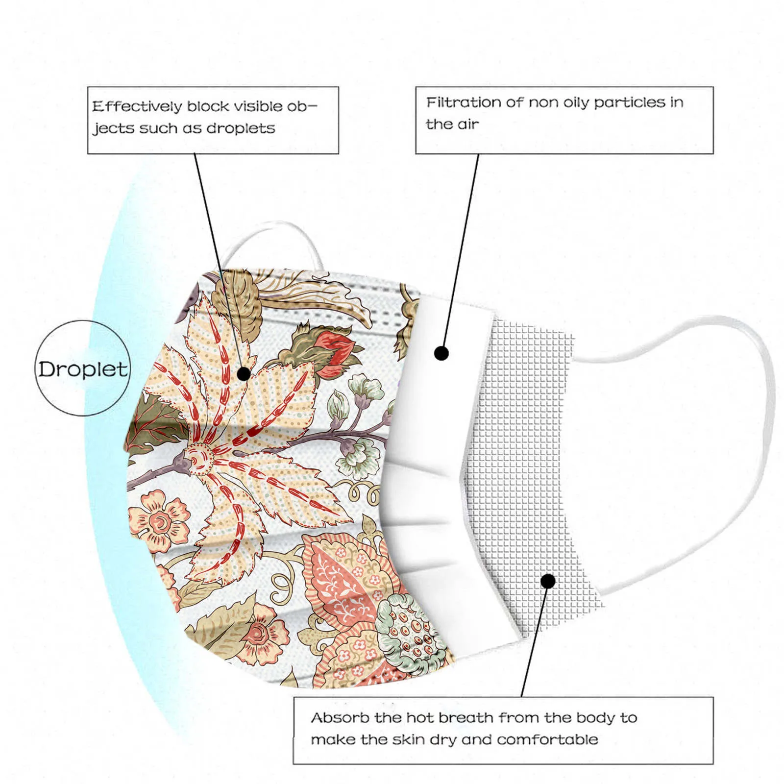 Маска одноразовая для лица с цветочным принтом, пылезащитная 3-слой...