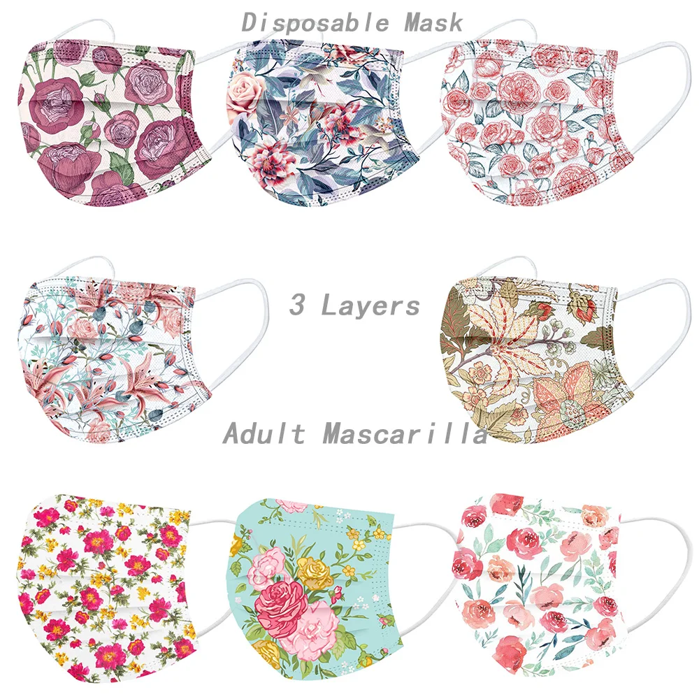 10 шт., маски с цветочным принтом для взрослых, одноразовые маски с цветочным узором для лица, 3 слоя, мелтдутая ткань, лицевая маска с фильтром
