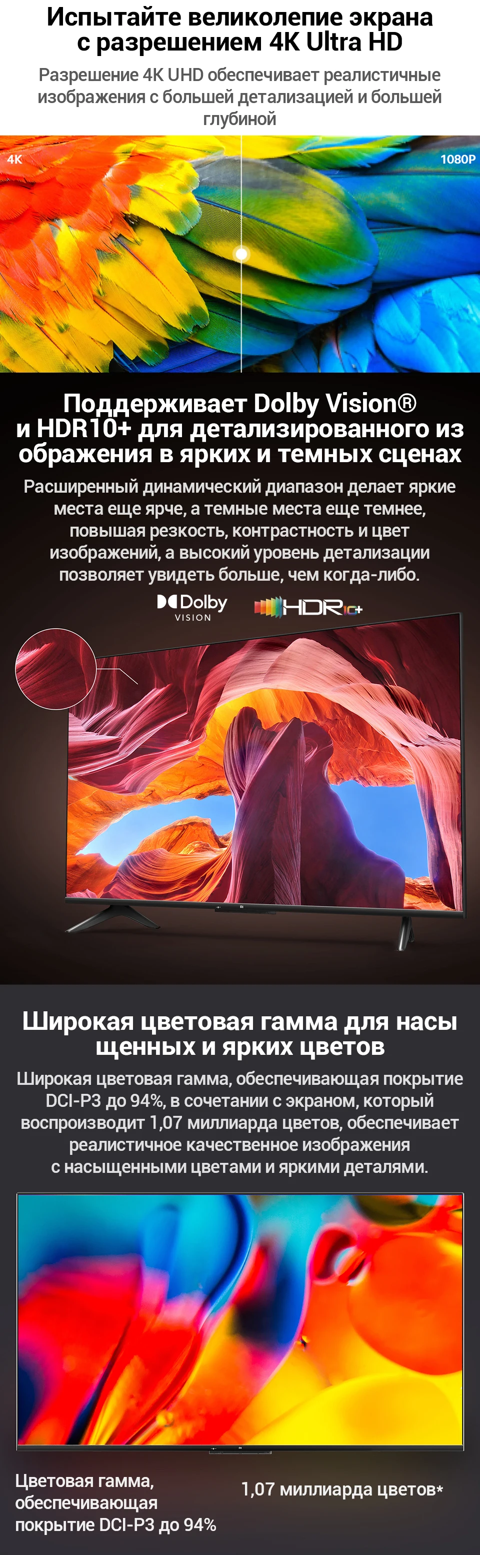 Xiaomi Телевизор 55 Mi TV P1 55" Smart TV Безграничный экран 4K MEMC Android TV Google Ассистент, управление без кнопок MOLNIA