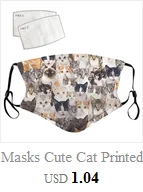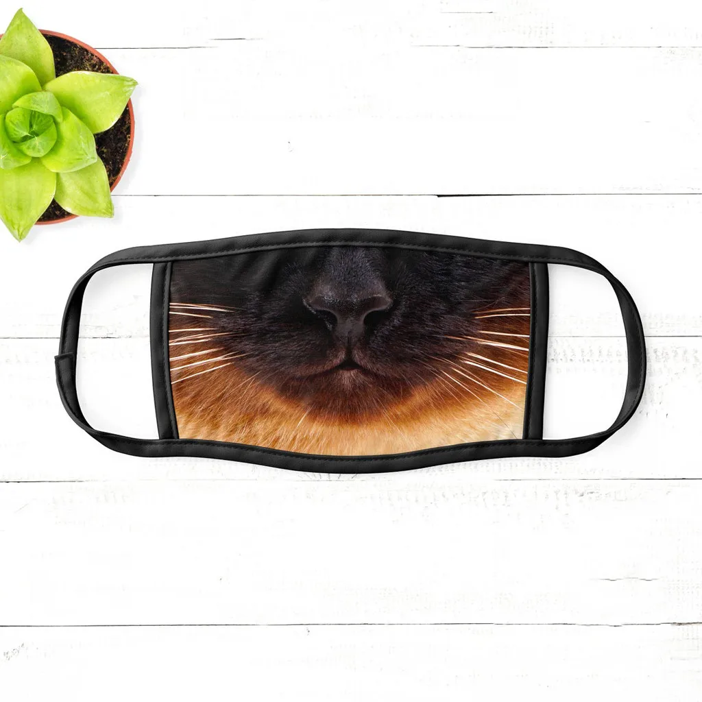 Маска унисекс с 3D принтом кошки, моющаяся хлопковая маска для лица, ветрозащитная многоразовая Пылезащитная маска для рта, маска для лица