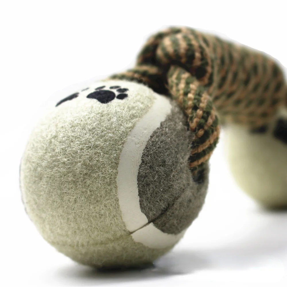 1. Теннисная хлопковая веревка гантели в форме собачьей игрушки, изготовленная из хлопковой пеньковой веревки и резиновых шариков, подходит для средних и больших собак