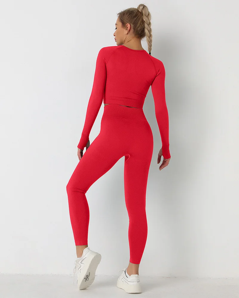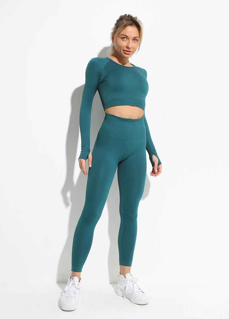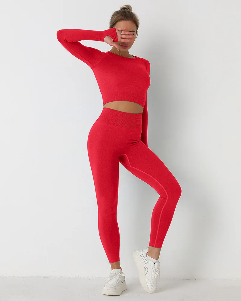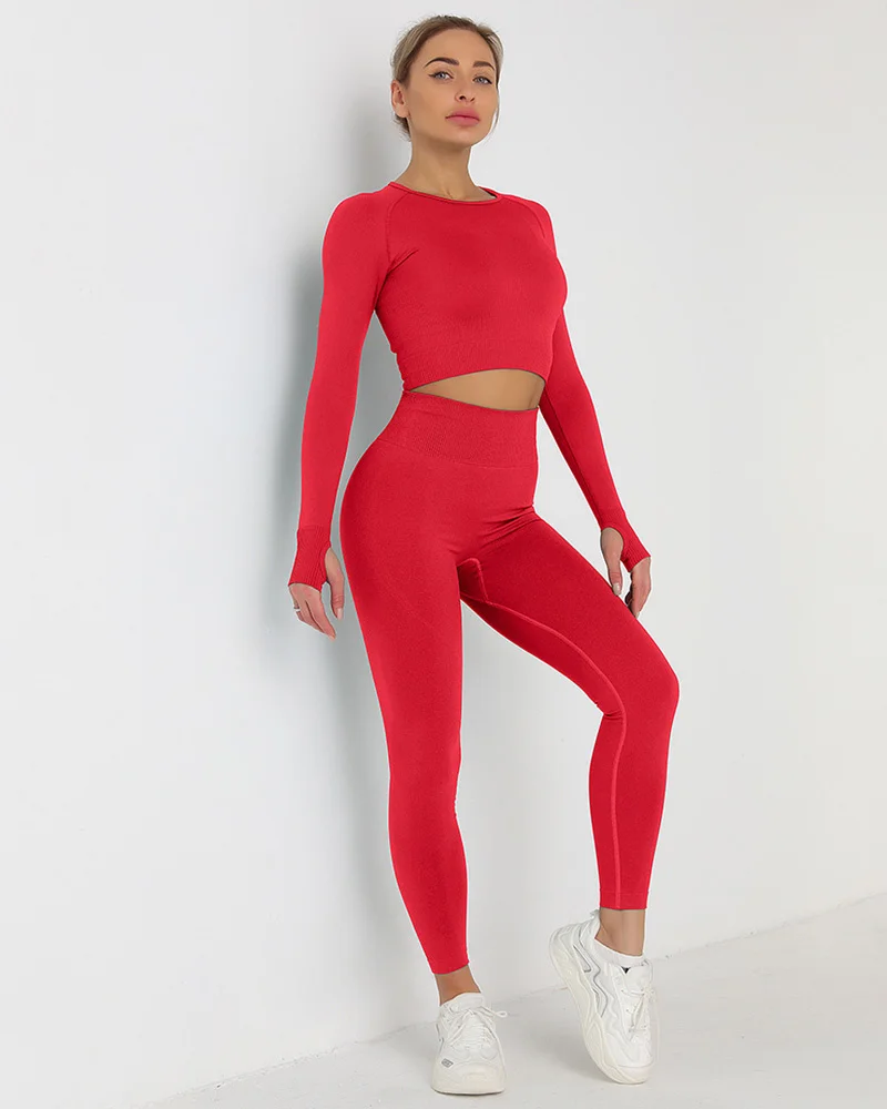 Hyperflex бесшовные комплекты для йоги спортивный костюм для женщин спортивная одежда фитнес с длинным рукавом укороченный топ с высокой талией Леггинсы Спортивная одежда