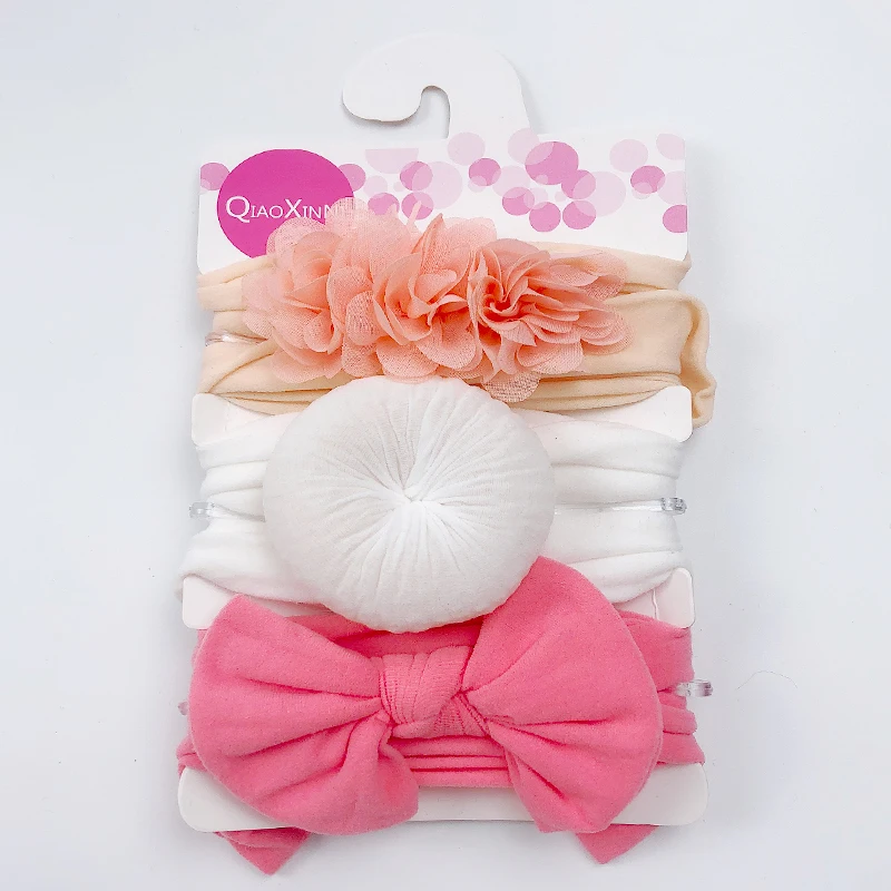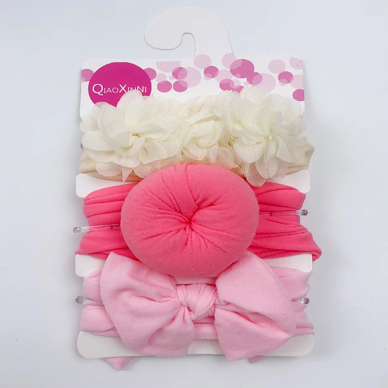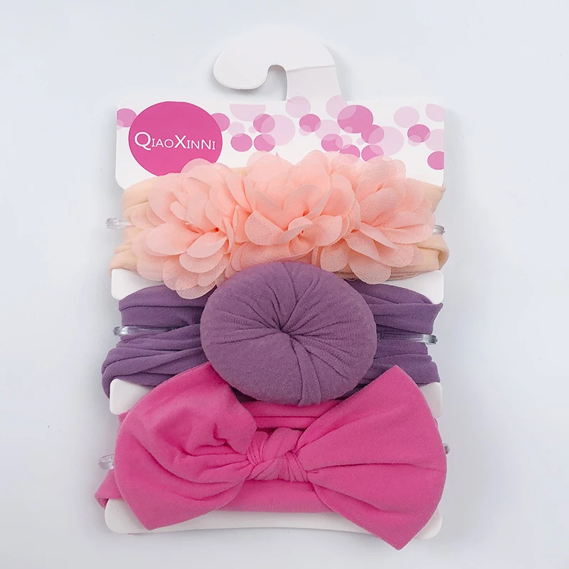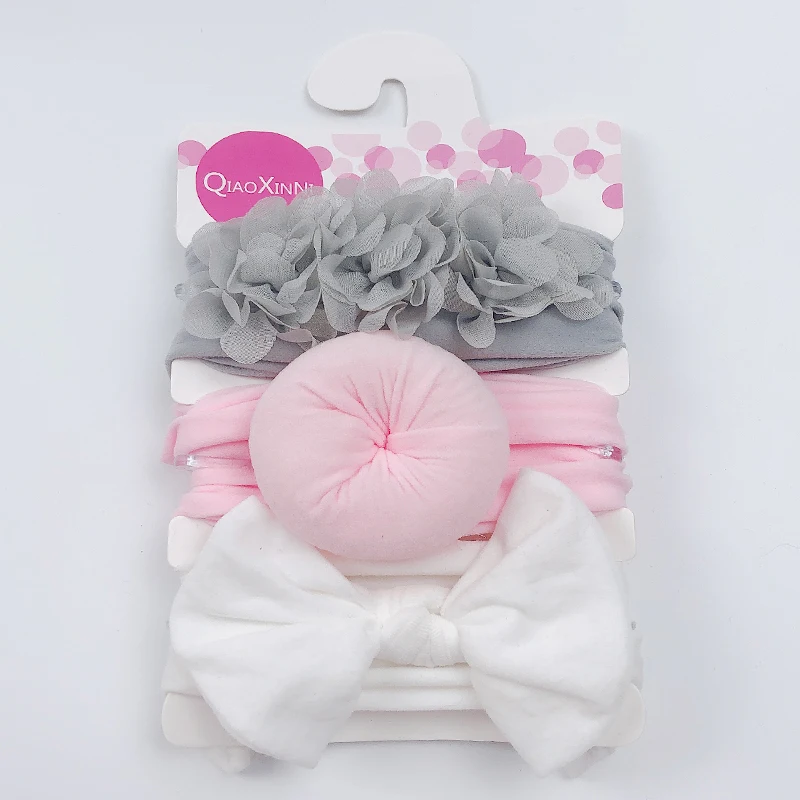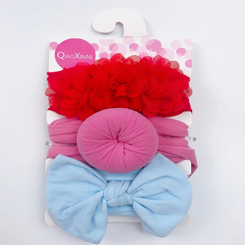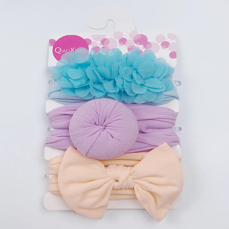 3 шт.компл. детская эластичная шифоновая цветочная ткань однотонная для девочек банты нейлоновая повязка для волос аксессуары для волос