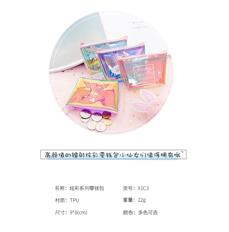 Лазерный Кошелек для монет, женская маленькая косметичка, чехол для ключей, прозрачный ПВХ маленький кошелек хранилище, сумка для губной помады, сумка для монет, новинка 2021Размер: 9*8*3 смВес: 36 г