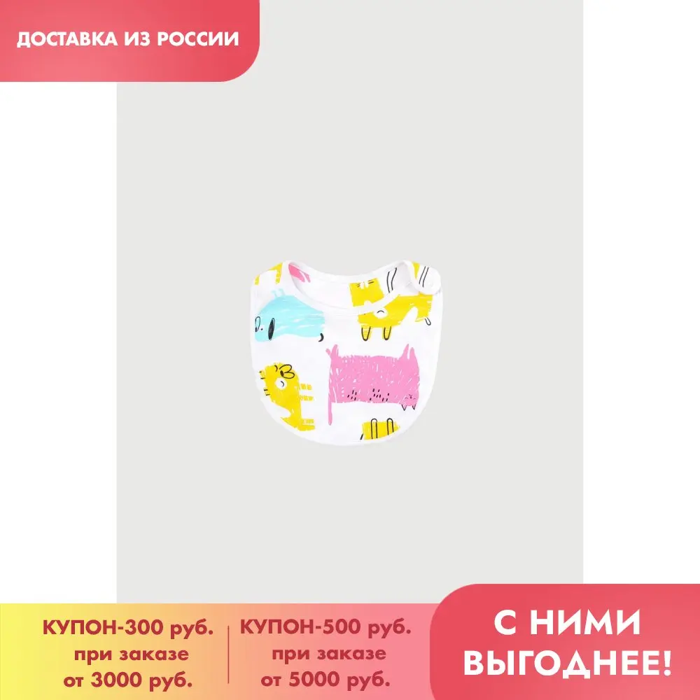 CROCKID, нагрудник, для девочек, К 8502, розовые кошки собаки на белом