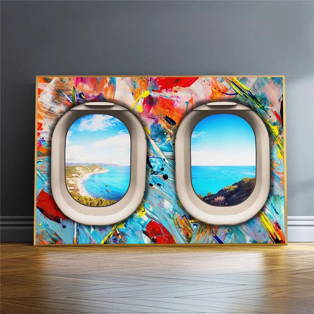 Художественная Настенная картина с акварельным окном и сиденьем, цветные постеры с граффити и принты, Картина на холсте, декоративная роспись, картина, подарок