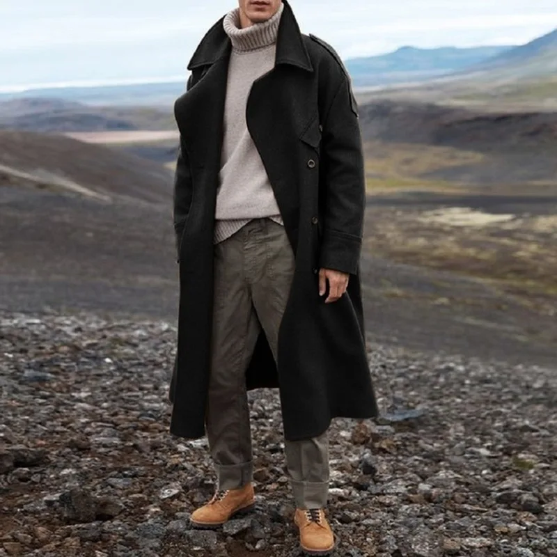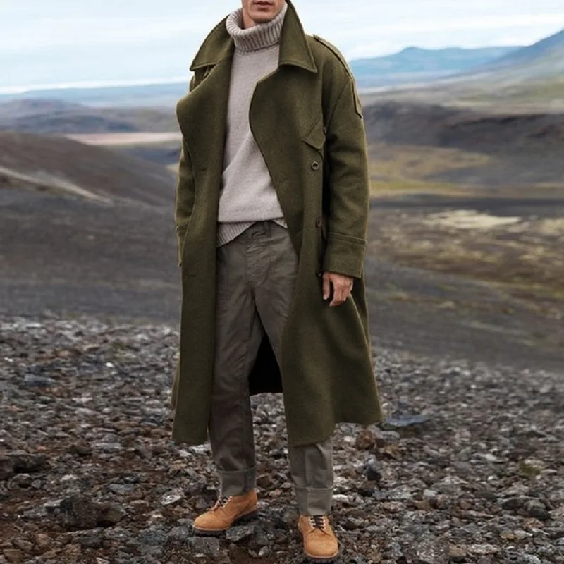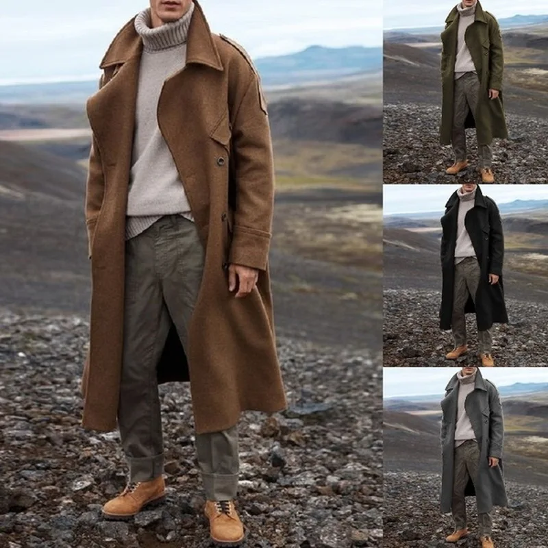 Мужской длинный Тренч в стиле ретро, коричневое теплое шерстяное пальто в стиле ретро, уличная одежда, верхняя одежда, 2021