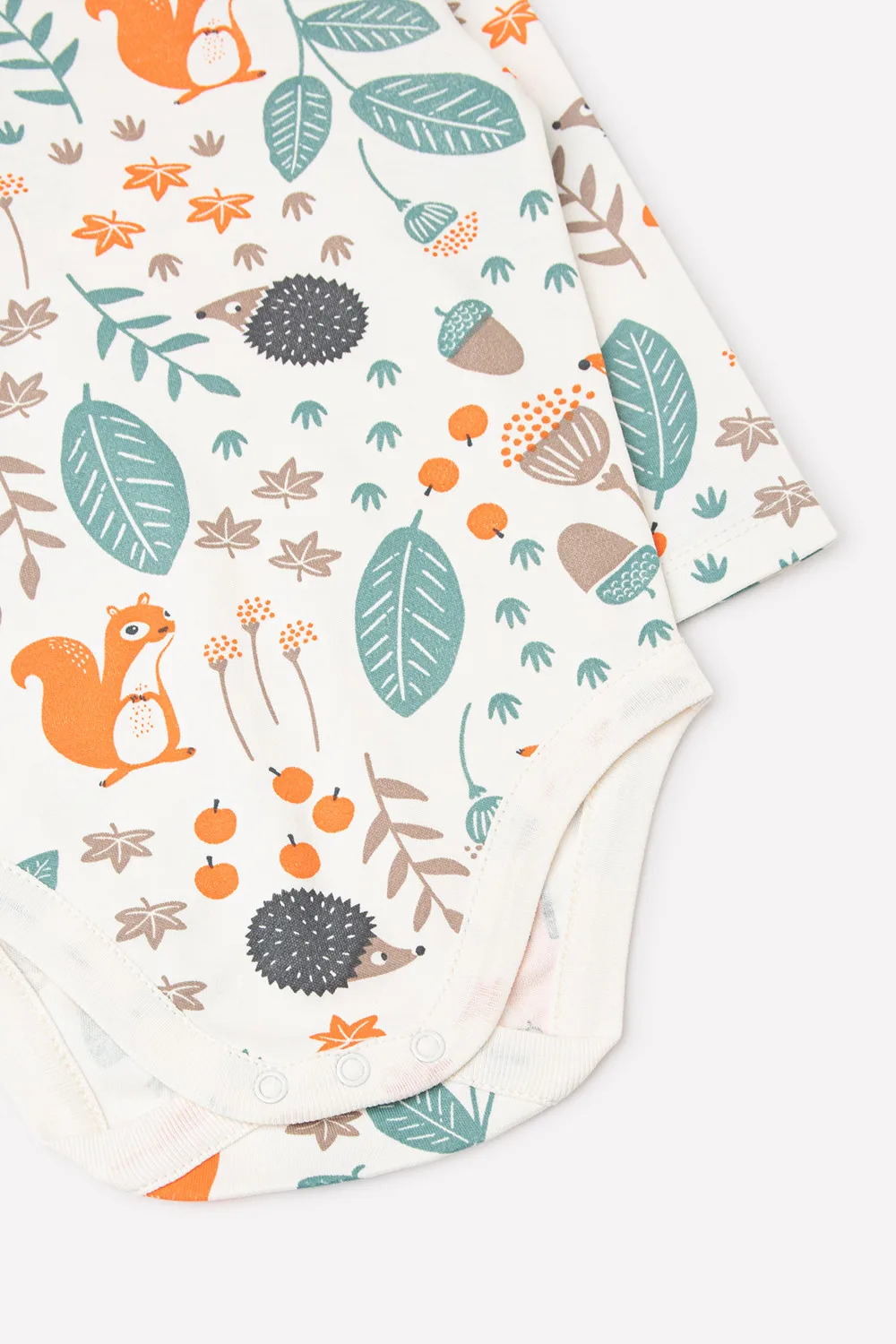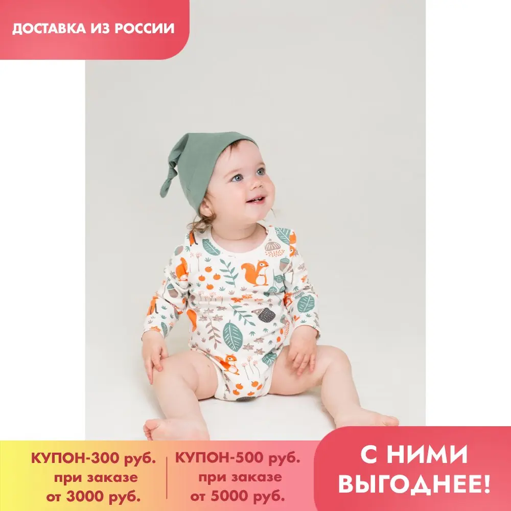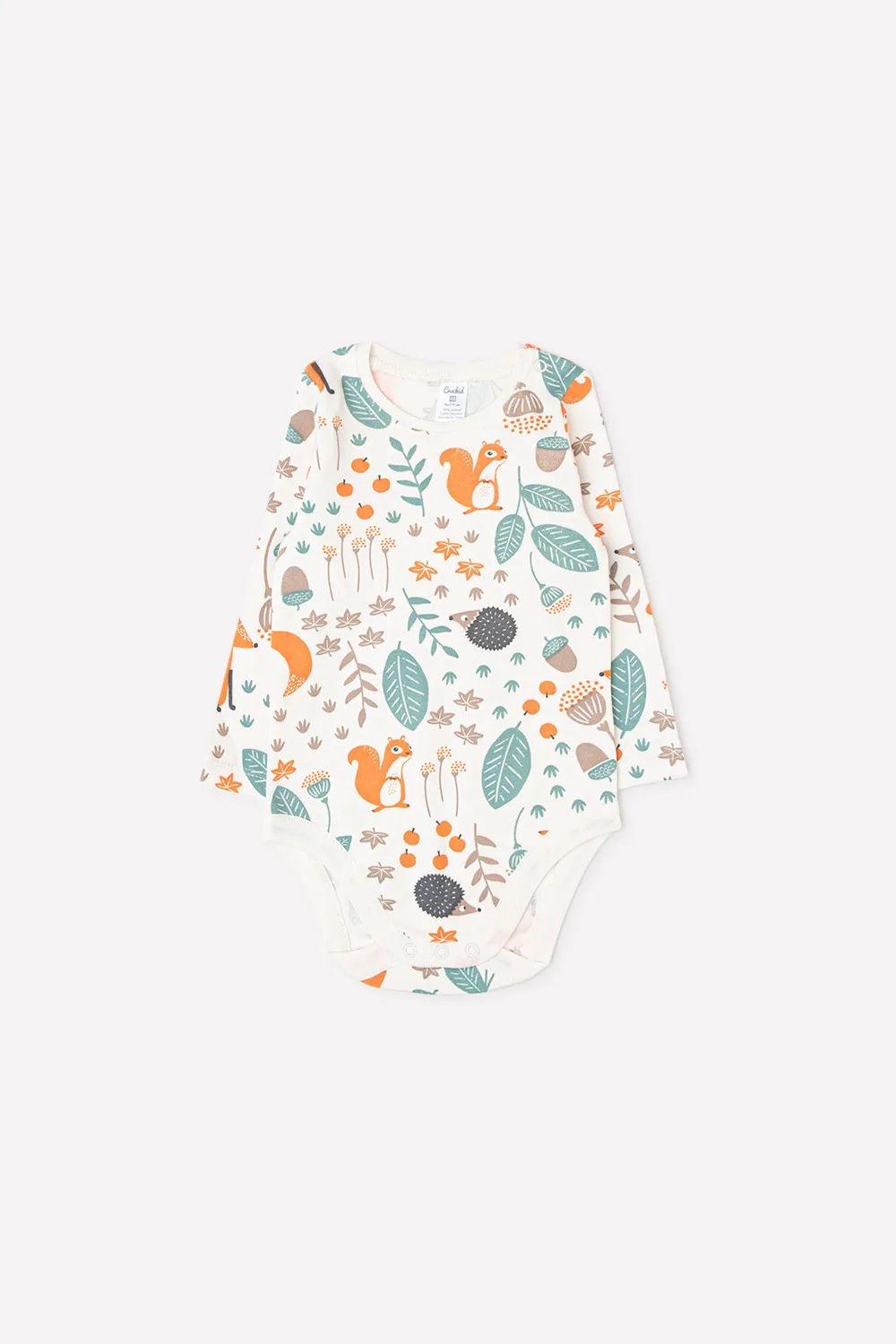 Описание: Боди из натурального хлопка с длинными рукавами. Украшено набивным рисунком. Застёгивается на кнопки на плече и в паху.