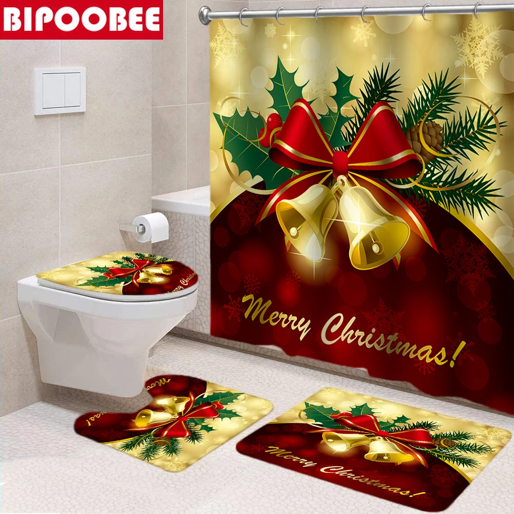 Новые рождественские занавески для ванной и душа с золотым колоколь...