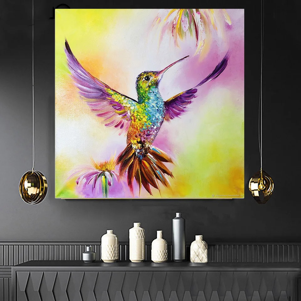 Алмазная 3D Мозаика сделай сам, картина с колибри и цветами, полная круглая Вышивка крестиком, с птицами, полная выкладка, животное