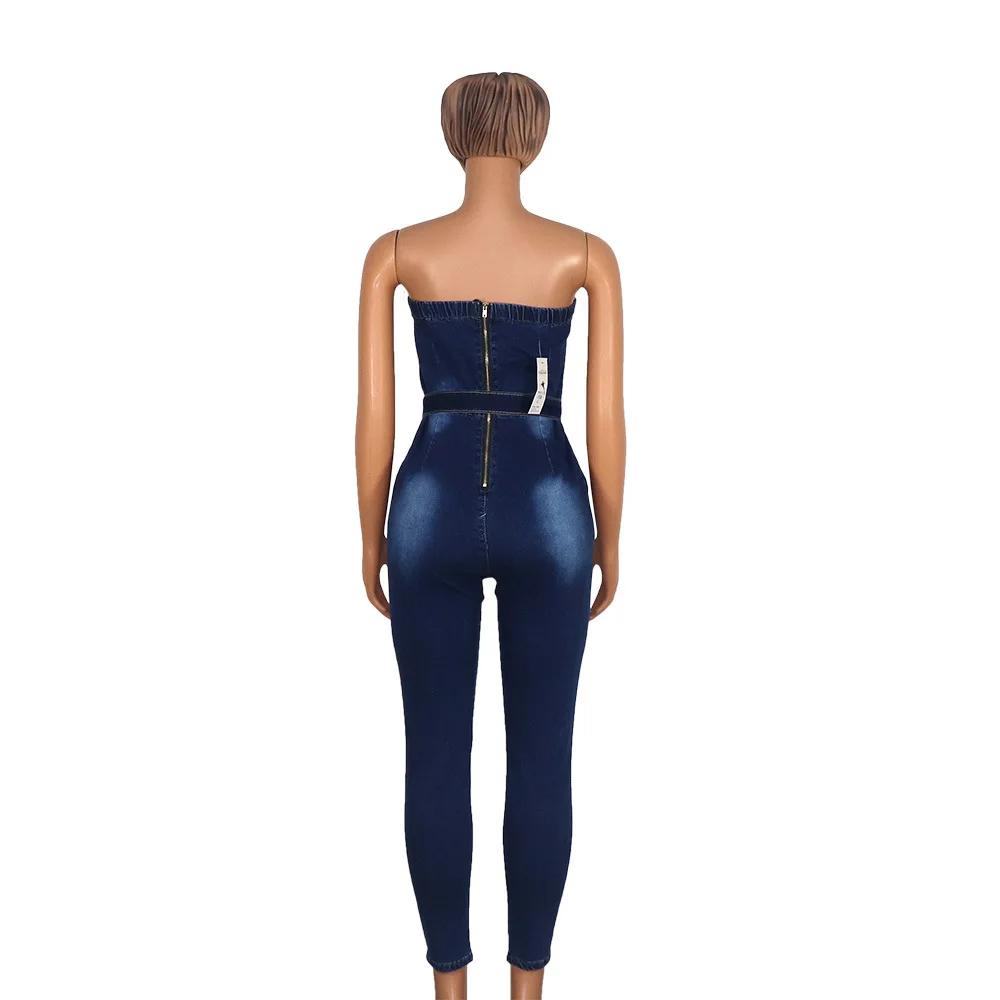 Джинсовый Облегающий комбинезон, Женский Повседневный джинсовый комбинезон-карандаш с завышенной талией, на молнии, эластичный комбинезон с поясом, осень 2021