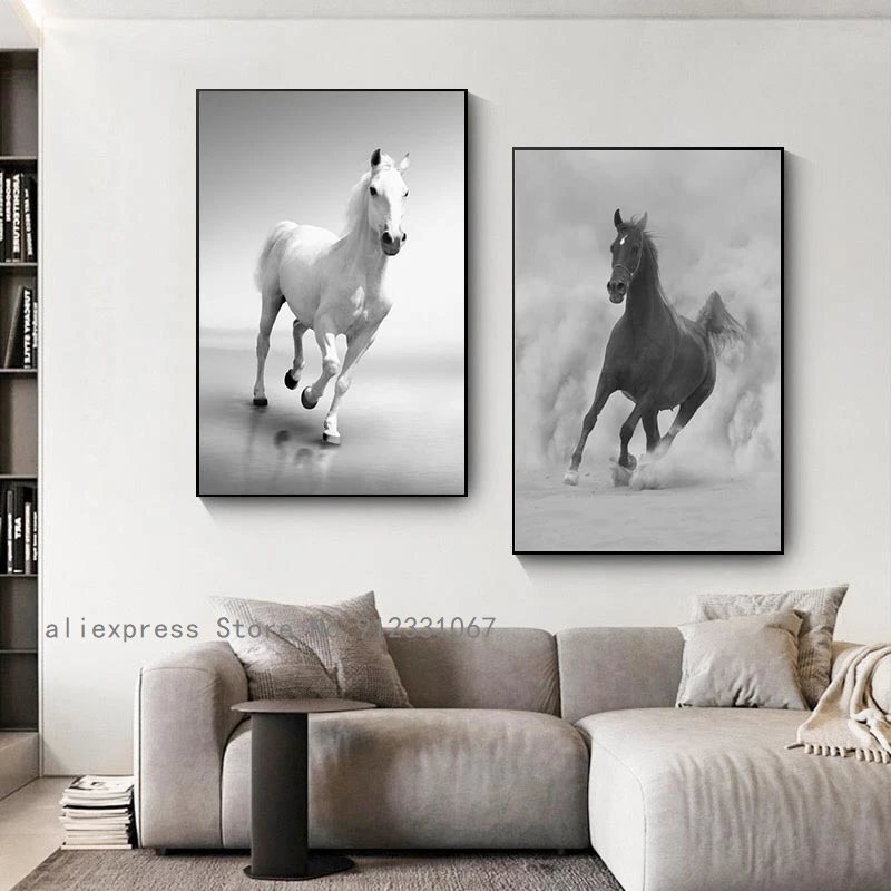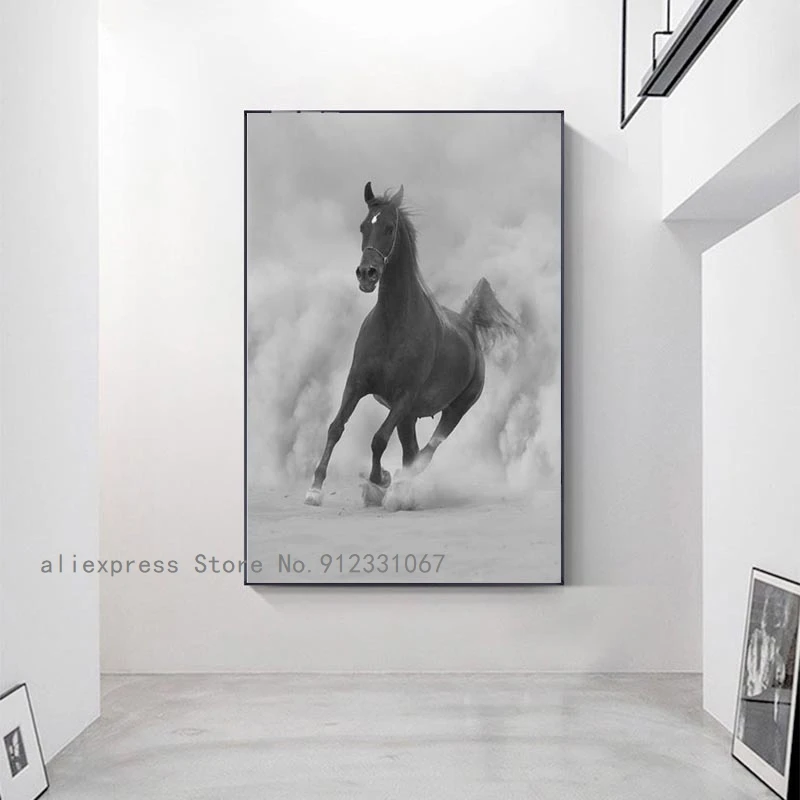 Абстрактная Картина на холсте бегущая черно-белая лошадь настенное искусство скандинавские плакаты и принты современные картины для домашнего декора