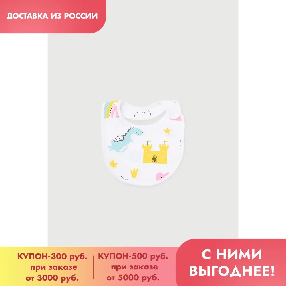 CROCKID, нагрудник, для девочек, К 8511, замок принцессы на белом