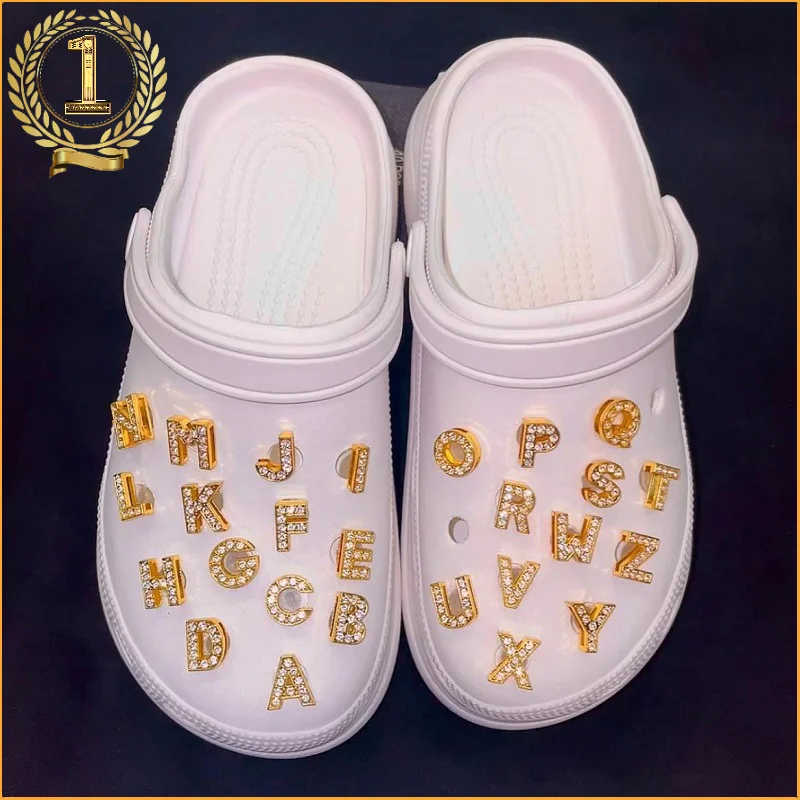 Роскошные золотые стразы с надписями, Croc, подвески, дизайнерская DIY металлическая обувь, украшение для Croc JIBS Clogs, подарки для детей, женщин, девочек