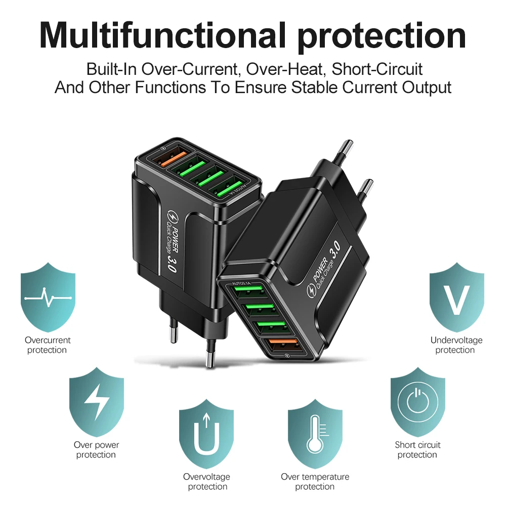 Зарядное устройство с 4 USB-портами и поддержкой быстрой зарядки, 3,0